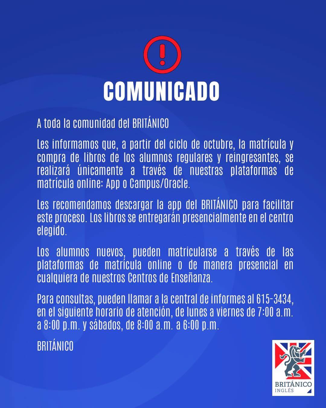 Comunicado: Información oficial de matrícula y compra de libros