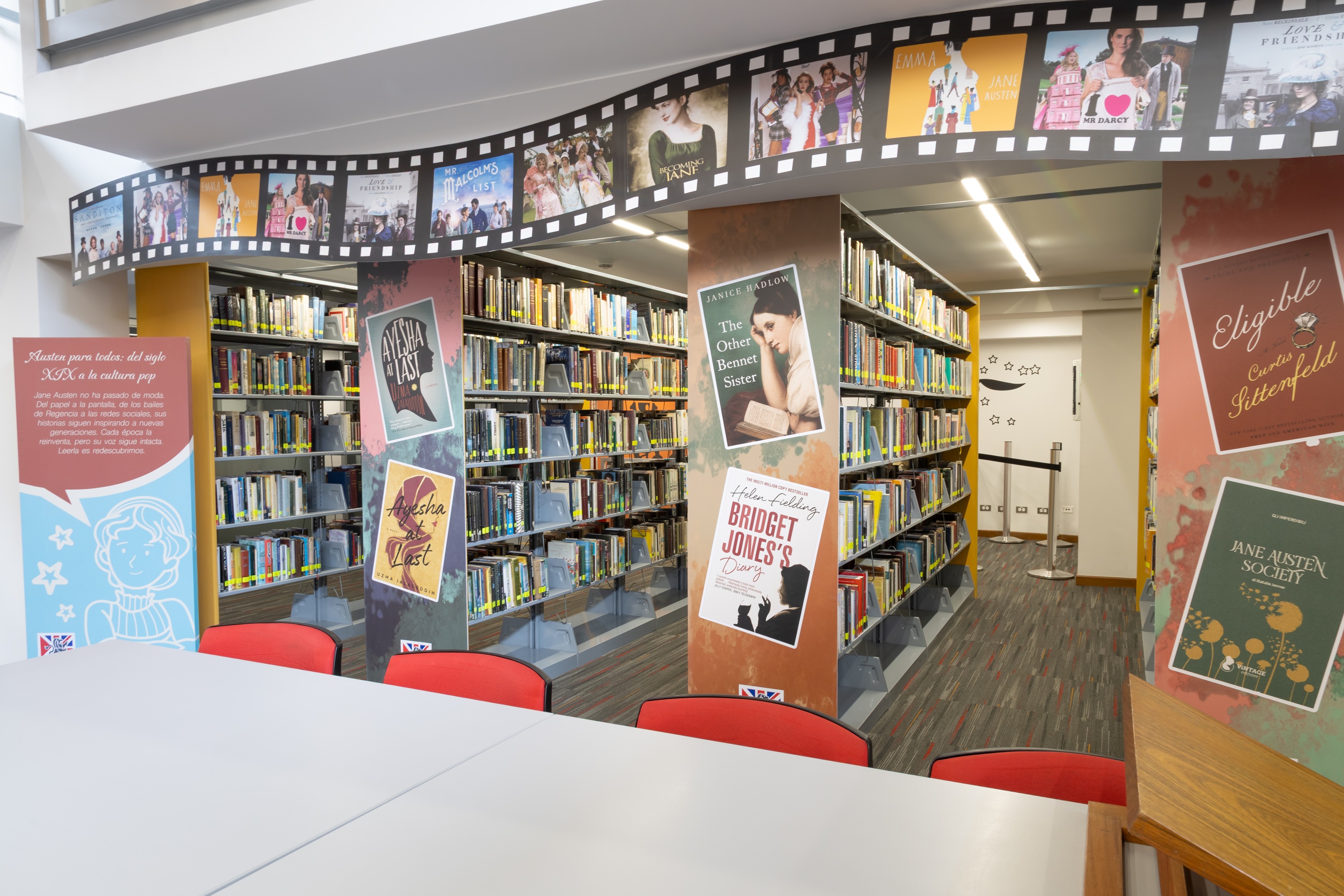 En la biblioteca, el público podrá encontrar títulos esenciales como Pride & Prejudice, Emma, Sense & Sensibility, Northanger Abbey, Mansfield Park y Persuasion, además de adaptaciones cinematográficas y miniseries.